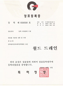- 10. 월드 드레인 상표등록 ( 2003.06.10 ) 등록 제 0550550호 등 17건 보유 중 이며 현재 월드 P.P 드레인 보드 관련 2건 출원 중 에 있습니다.