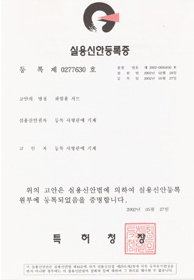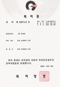 - 발명특허 8건, 실용신안특허 5건, 의장등록 2건, 상표등록 2건, 인증서 1건(Q마크)